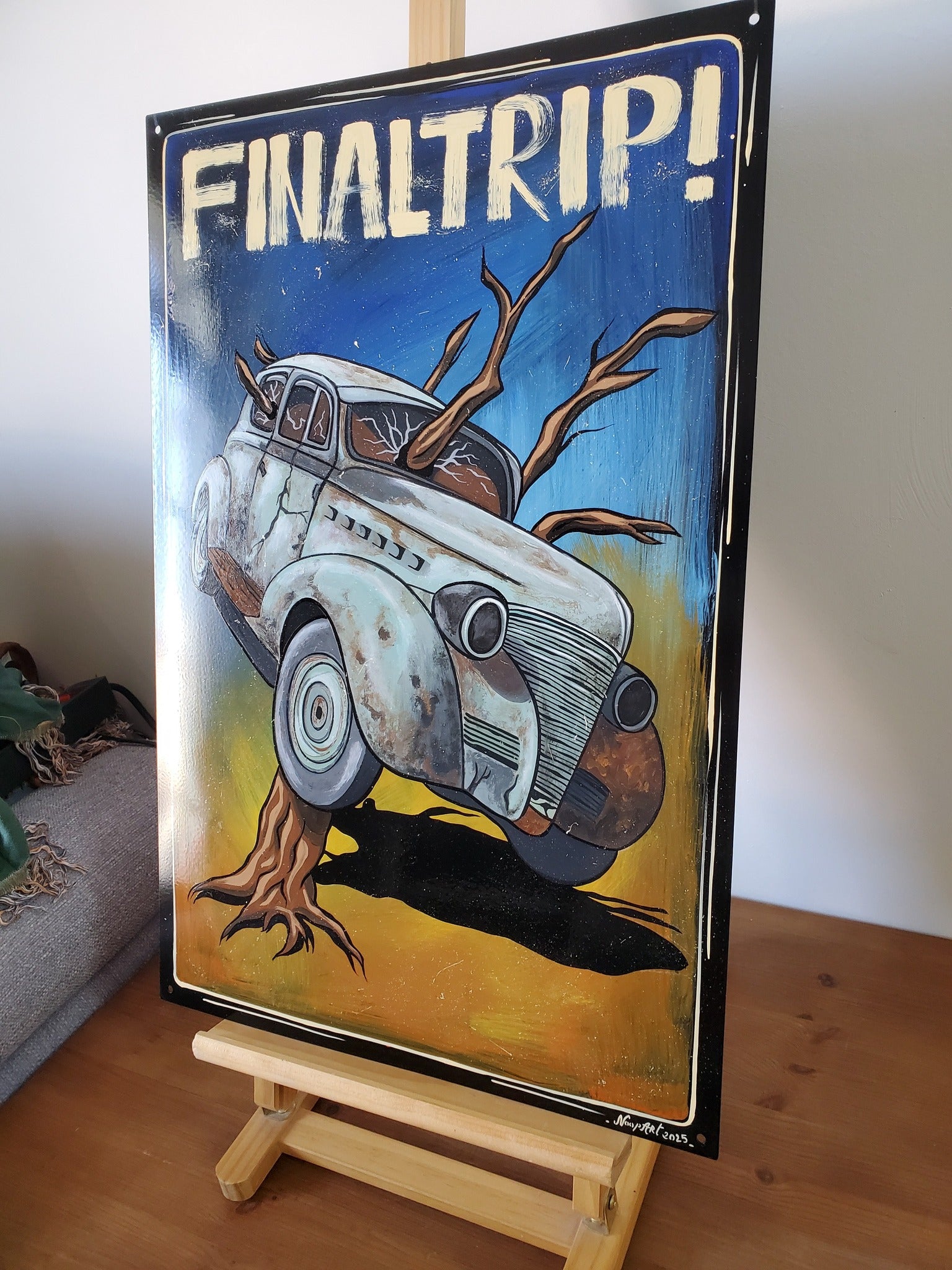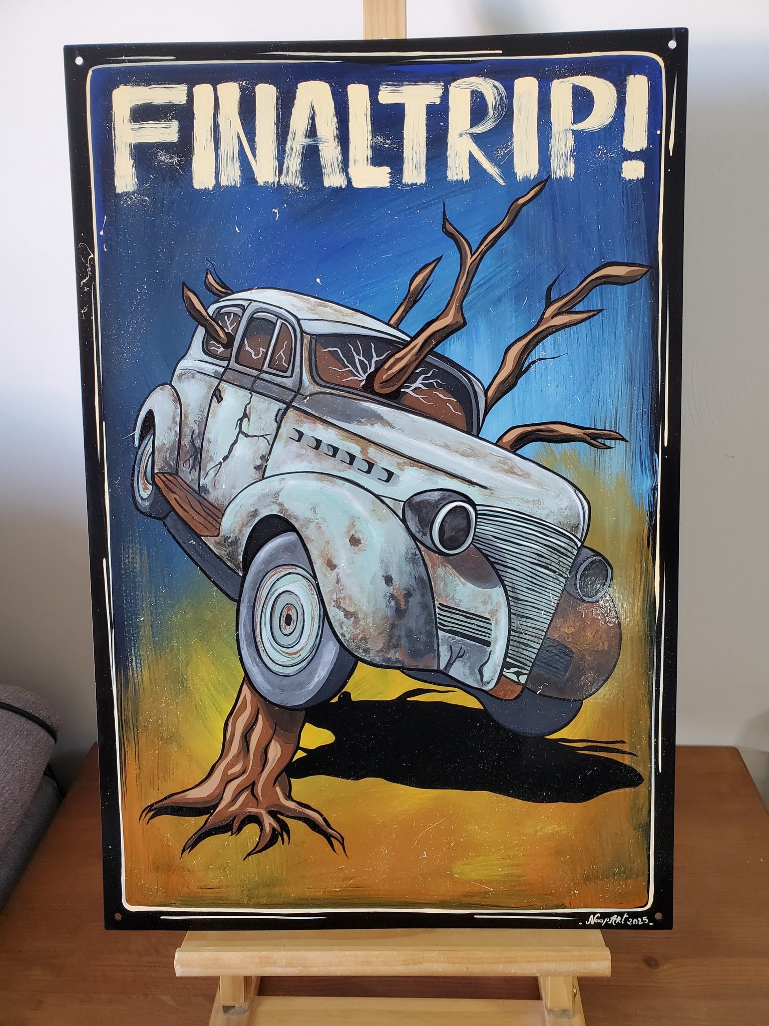 Peinture 1shot sur plaque métal 40X60 , signée et datée.