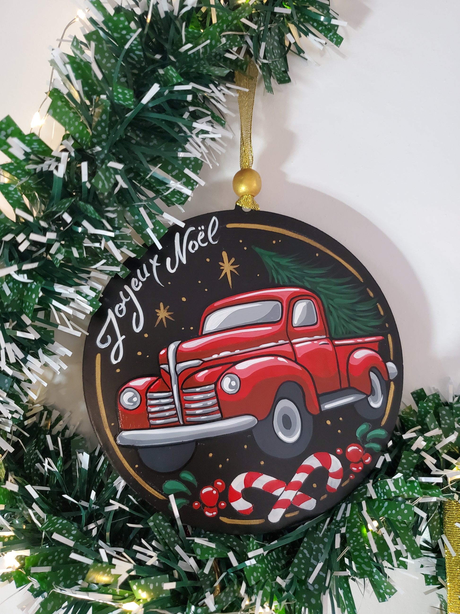 Suspension en métal , thème Noël , peint à la main